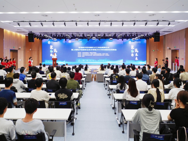 5月29日下午,“临港新片区校园引才工作站”授牌仪式暨2025年校园综合招聘会在上海电子信息职业技术学院奉贤校区举办。本次活动是在上海市教育委员会、临港新片区管委会的指导下,由上海电子信息职业技术学院、临港新片区管委会党群工作部(人力资源处)联合主办,并得到了上海市学生事务中心、奉贤区人力资源和社会保障局、奉城镇人民政府的大力支持。