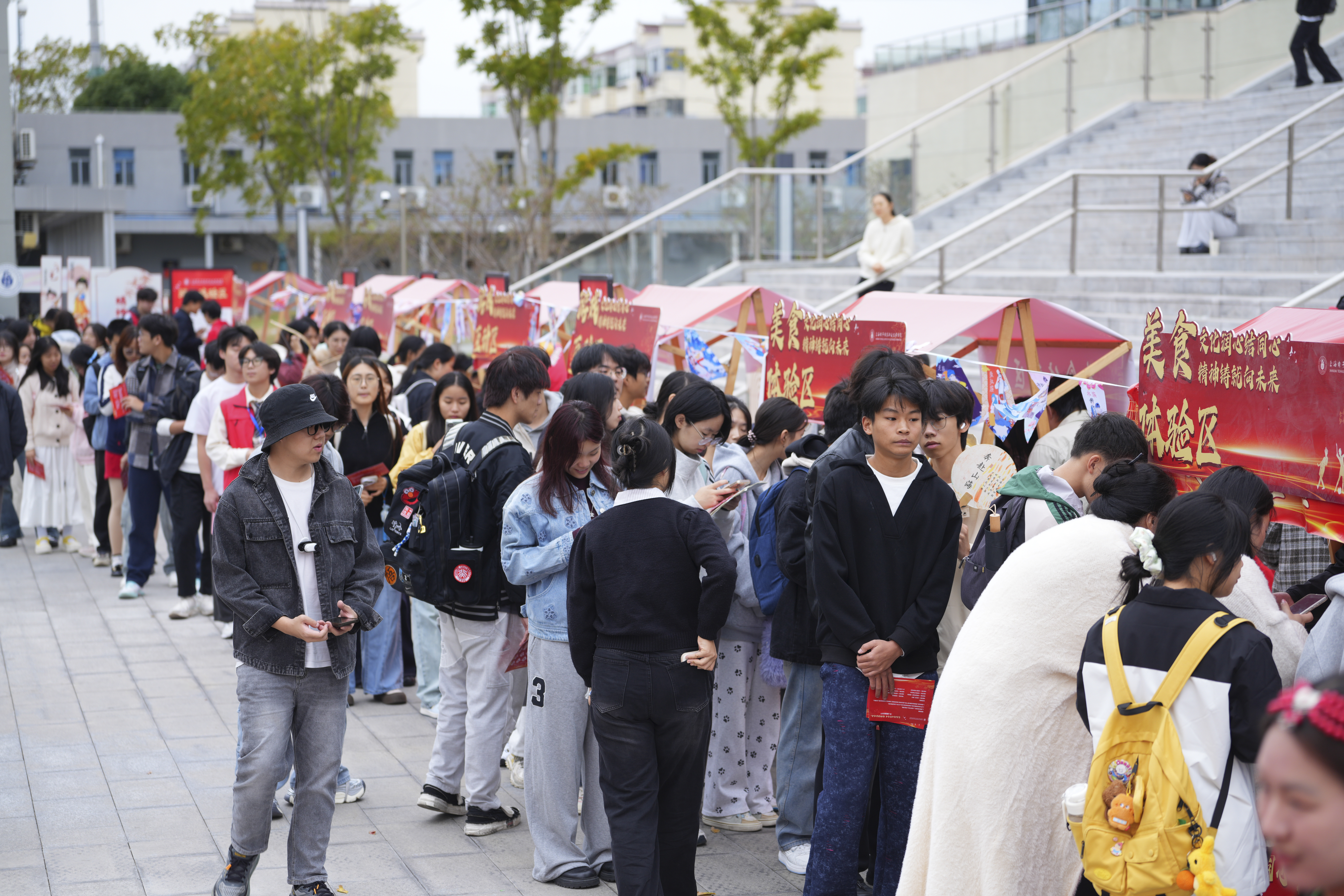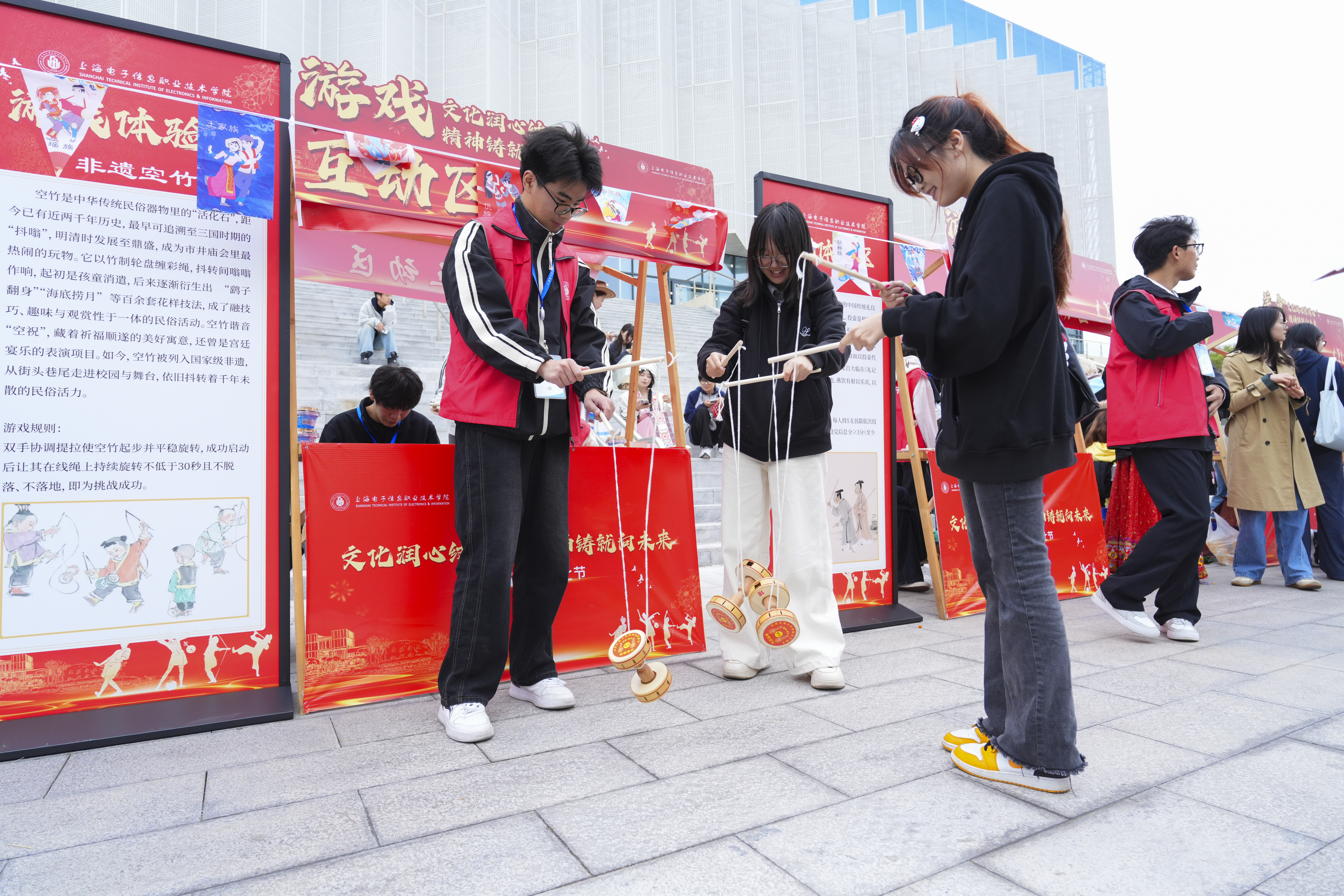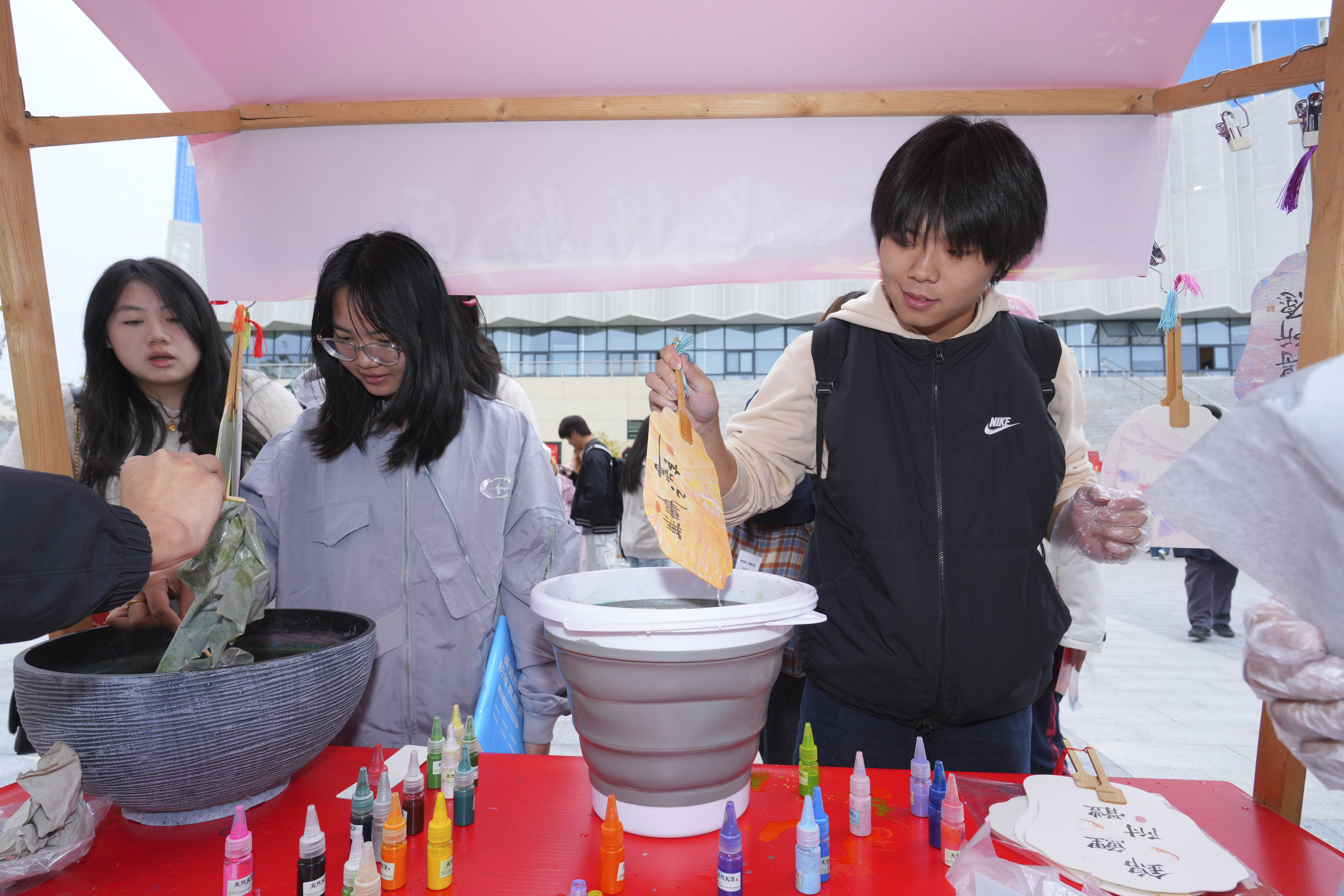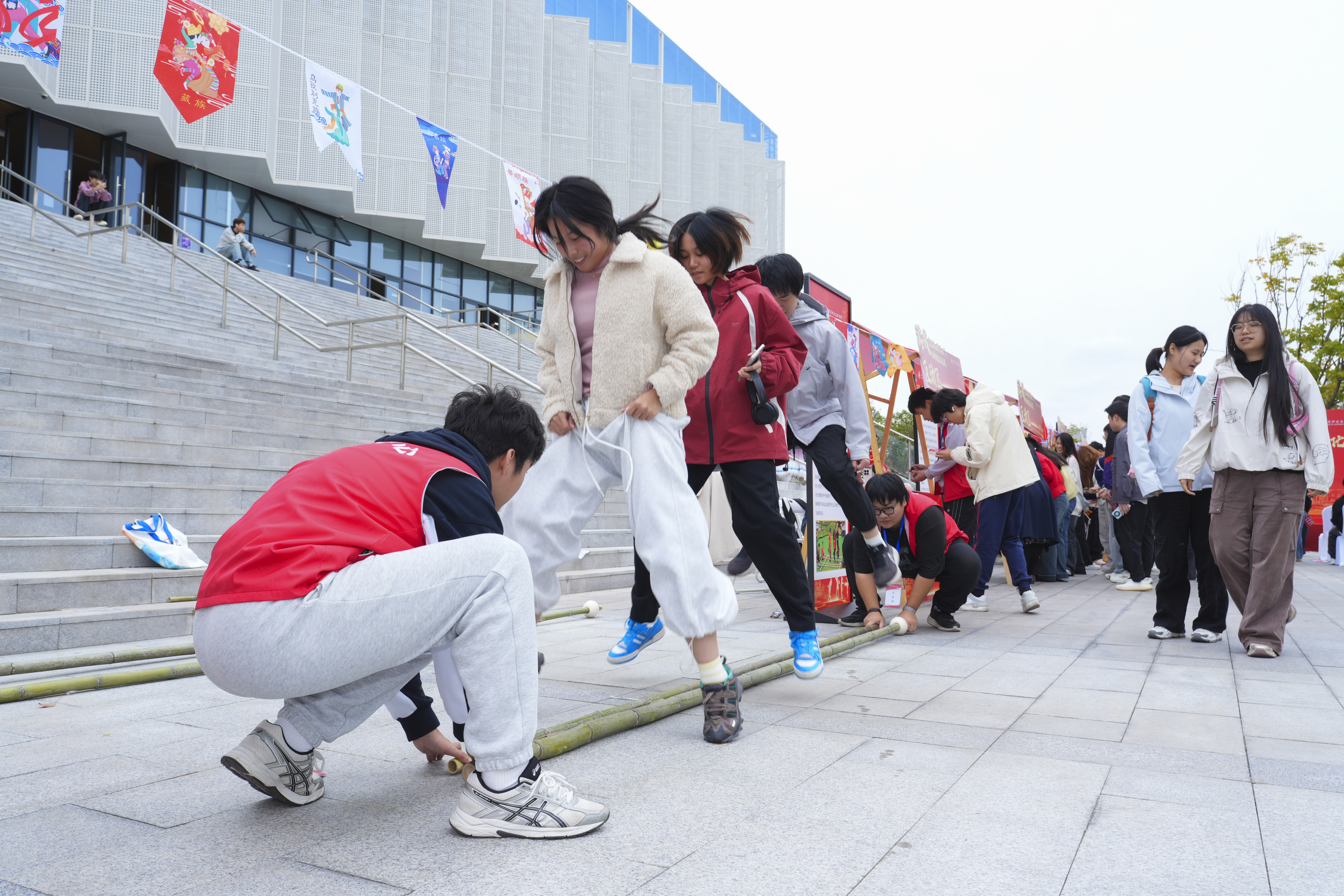 游戏体验区中,同学们抖起手中的空竹,清脆的声响里满是青春的欢笑;传统的锤丸、竹竿舞、射箭、投壶等项目,更是让同学们热情高涨、争相体验。