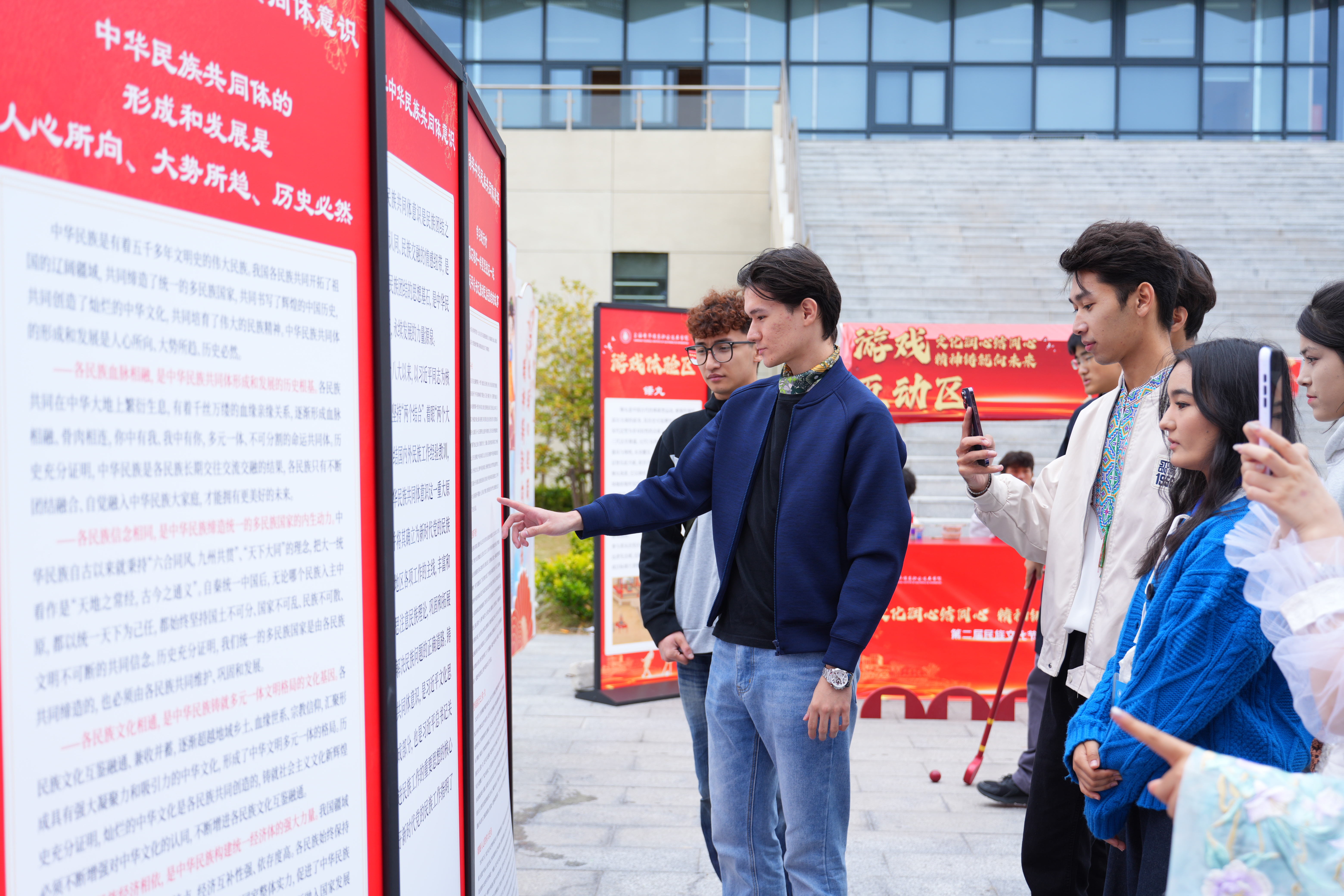 民族文化节还吸引了德国留学生的积极参与。他们欣赏着民族歌舞、与同学们交流民俗,合影留念,生动诠释了“民族的就是世界的”,让中华文化的魅力跨文化传递。