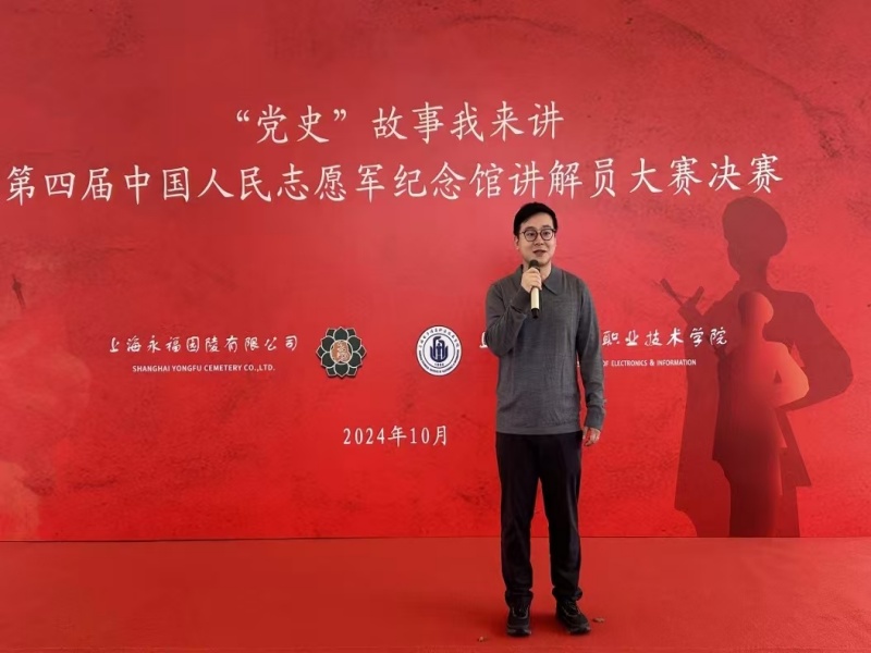 上海永福园总经理徐汶强先生在讲话中指出,上海中国人民志愿军纪念馆作为上海市爱国主义教育基地,应为学生开展爱国主义教育提供理想的场所,希望同学们讲好红色故事,传承红色基因,弘扬先辈们不畏艰难、甘于奉献的革命精神。